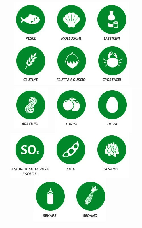 Elenco degli ingredienti allergenici utilizzati in questo esercizio e presenti nell’allegato II del Reg. UE n. 1169/2001 – “Sostanze o prodotti che provocano allergie o intolleranze”